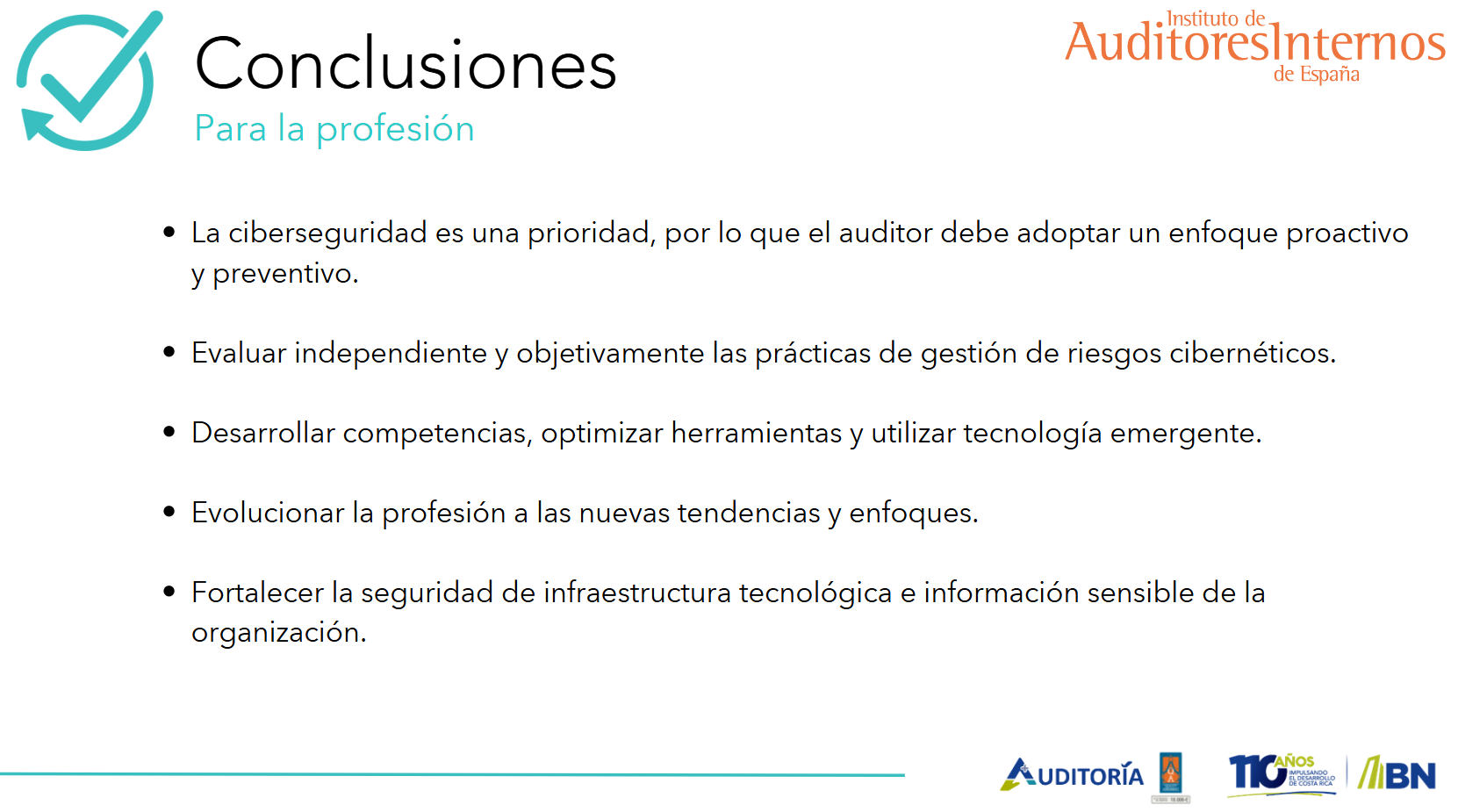 - La ciberseguridad es una prioridad y los auditores internos deben adoptar un enfoque proactivo y preventivo.