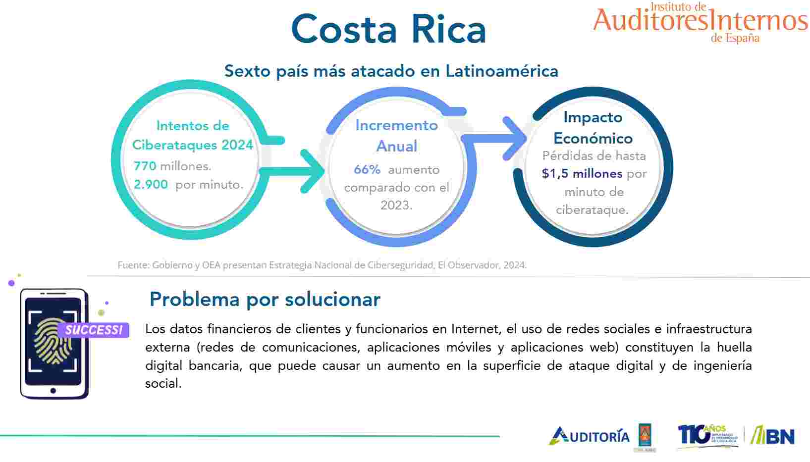 Tal y como ha puesto de manifiesto Araya, AuditGuard responde a la necesidad de la entidad de anticiparse a uno de los principales riesgos a los que tienen que hacer frente las empresas en todo el mundo, la ciberseguridad, máxime teniendo en cuenta que “Costa Rica es el sexto país más atacado de Latinoamérica, con 2.900 intentos de ciberataques por minuto y un aumento interanual del 66%, siendo el Banco Nacional uno de los principales objetivos por tratarse de la entidad financiera más grande del país”.