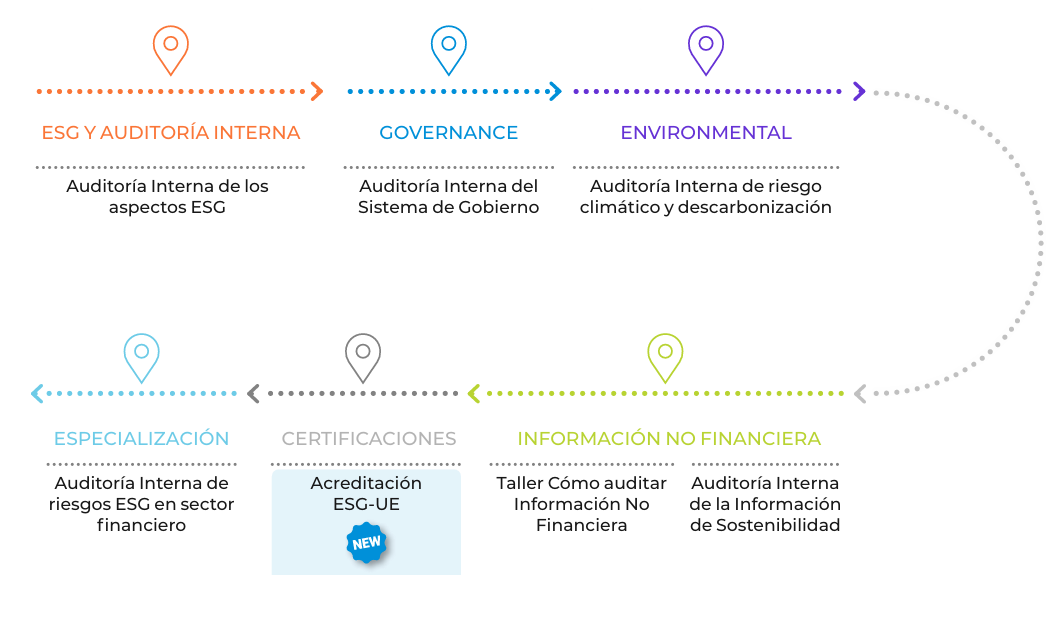 - En el caso de cursar la especialización para entidades financieras; esta parte te permitirá conocer la normativa relevante y aplicar el enfoque auditor en la revisión de los aspectos más importantes de “ESG”, en relación con las actividades financieras: procedimiento de Inversión Socialmente Responsable (Buy side y sell side); Proxy Voting; Engagement; emisiones de Instrumentos Financieros bajo criterios ESG, etc.