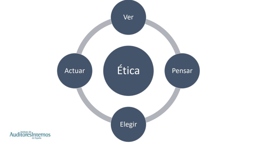Precisamente, tal y como remarcaba Camacho, es, en esa toma de decisiones, donde la dimensión ética del auditor interno juega un papel fundamental, siendo cuatro las fases que hay que tener en cuenta en cualquier proceso de toma de decisiones: ver, pensar, elegir y actuar.