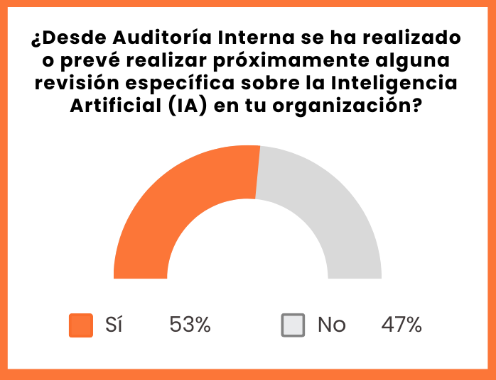 El 53% de las Funciones de Auditoría Interna ha realizado o prevé realizar alguna revisión específica sobre la Inteligencia Artificial (IA) en su organización.