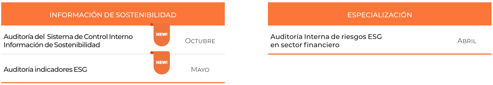 - Información de Sostenibilidad: Reporting, regulación, retos y desafíos, papel de Auditoría Interna, Sistema de Control Interno de la información de Sostenibilidad.