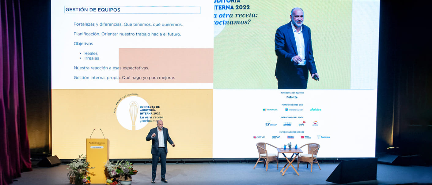 “Los auditores internos trabajamos en clave de riesgo, ese es nuestro campo de juego, un campo que cada día es más retador. […] Se están multiplicando los riesgos a los que nos enfrentamos y su complejidad y está haciendo que el partido sea mucho más desafiante, si cabe”, dijo.