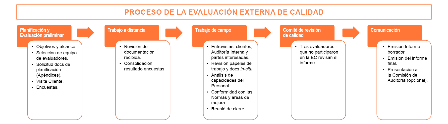 La Evaluación Externa de Calidad o Quality Assessment (QA) es una revisión completa para asegurar que la actividad de Auditoría Interna cumple en todo con las Normas y el Código de Ética, buenas prácticas, y requiere de preparación no solo por parte de la dirección de Auditoría Interna, sino de la propia organización.